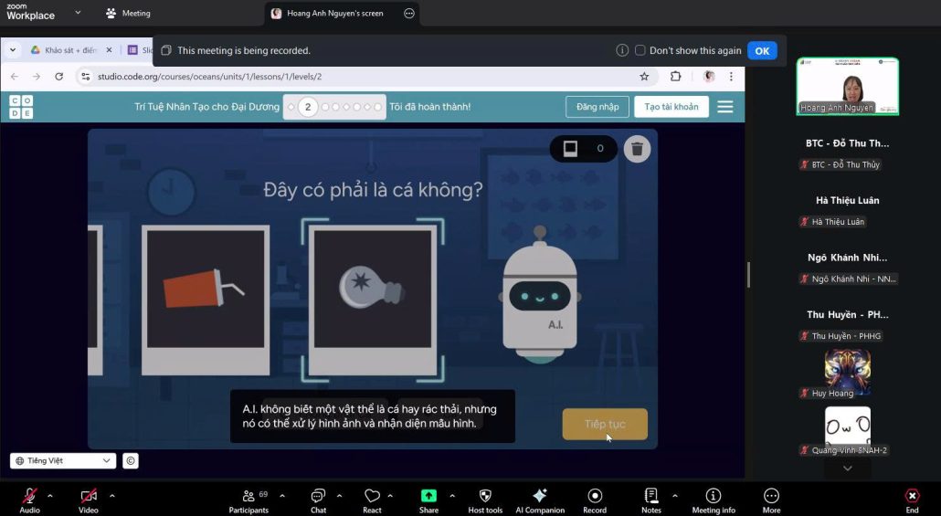 CFC cũng đã giới thiệu cho sinh viên nền tảng học tập của dự án tại www.aiclassasean.org/vi-VN nơi người học có thể tự học và nhận chứng chỉ trực tuyến.