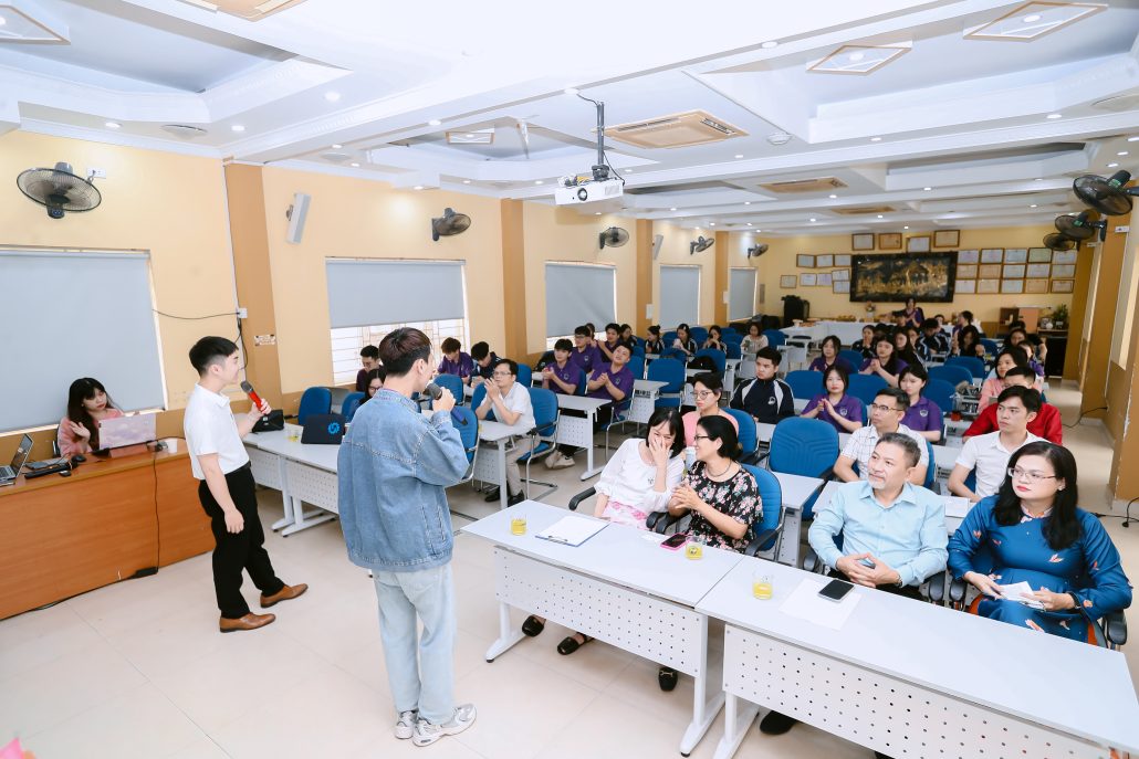 Hội trường nhanh chóng được lấp đầy bởi sự hào hứng của các đại biểu, thầy cô giáo và sinh viên. Không khí trở nên sôi động hơn với các tiết mục văn nghệ sôi động từ chính các bạn sinh viên Đại học Giáo dục, tiếp thêm ngọn lửa nhiệt huyết cho chương trình.